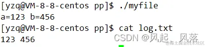 先在log.txt文件中输入内容 123 456 修改myfile.txt文件内容