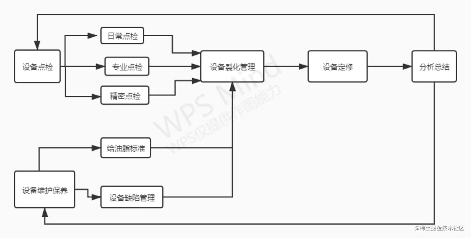 设备点维一体化管理体系以设备点检和维护保养为基础,通过日常、专业及精密点检,对点检测得的数据和设备给油脂保养情况进行统计分析,找出设备劣化的趋势和规律,并基于预防性检修原则和设备实际状况,确定检修周期和工期。严格按照计划开展设备检修和维护工作,实现全员参与、全过程管理,同时会将定期维修的结果反馈于设备点检和设备维护保养,优化设备点检和维护保养内容,从而实现设备点维的闭环管理。