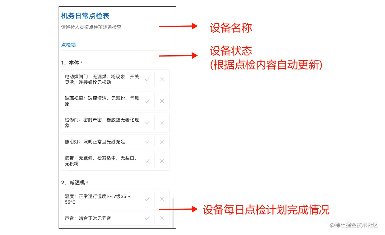 使用手机扫码进入主界面后,点检人员、维护人员、运行人员、管理人员可以根据功能分区选择自己需要的表单。 点检表、设备润滑记录、设备检修台账已内置好固定格式,点检人员、维护人员只需要现场勾选即可,另外各类记录可根据实际需求上传图片、视频、文件等资料。为了防止出现作假行为,可以通过限制地理位置、只允许现场拍摄,不允许从相册上传等方式确保上传数据的真实性。
