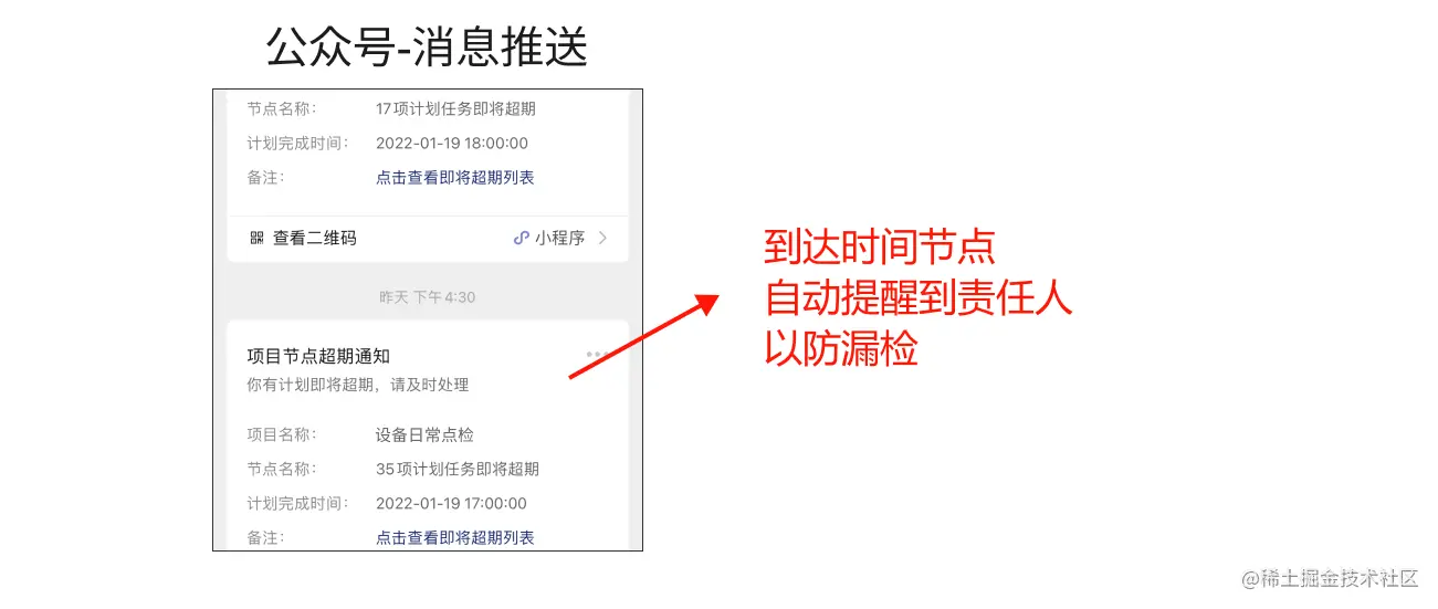 开启计划报表功能后,管理人员可实时通过手机后台查看计划执行情况,同时系统设置计划即将超期提醒,到达时间节点后自动提醒管理人员当前工作状况,管理人员可提醒相关人员及时完成各类计划。