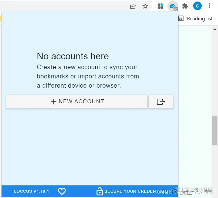 接下来,再回到我们浏览器中,找到刚开始安装好的floccus插件,点击插件图标。