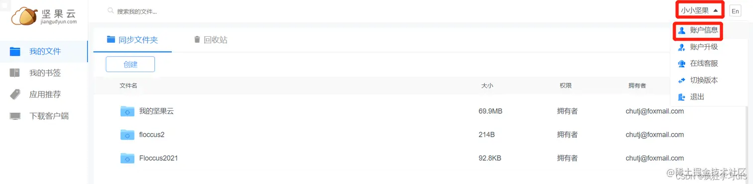 打开我们的坚果云,点击右上角的用户名称,随后点击“账户信息”。
