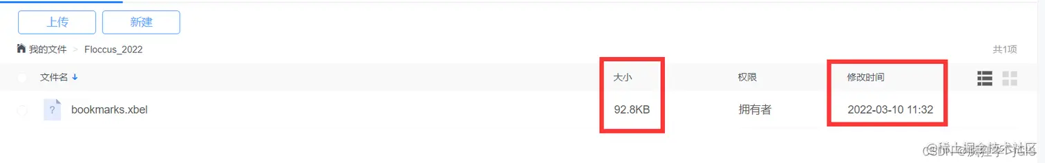 若不放心,还可以进入我们的坚果云查看bookmarks.xbel文件的信息,发现此时该文件的大小已经变大,且文件修改时间也发生了变化,说明我们的书签确实已经同步到了该文件中。