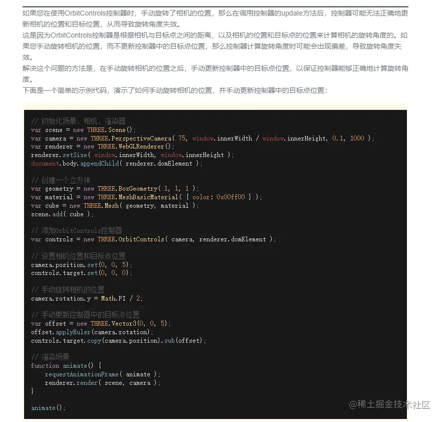 three.js控制器update和相机手动更新旋转角度冲突问题?