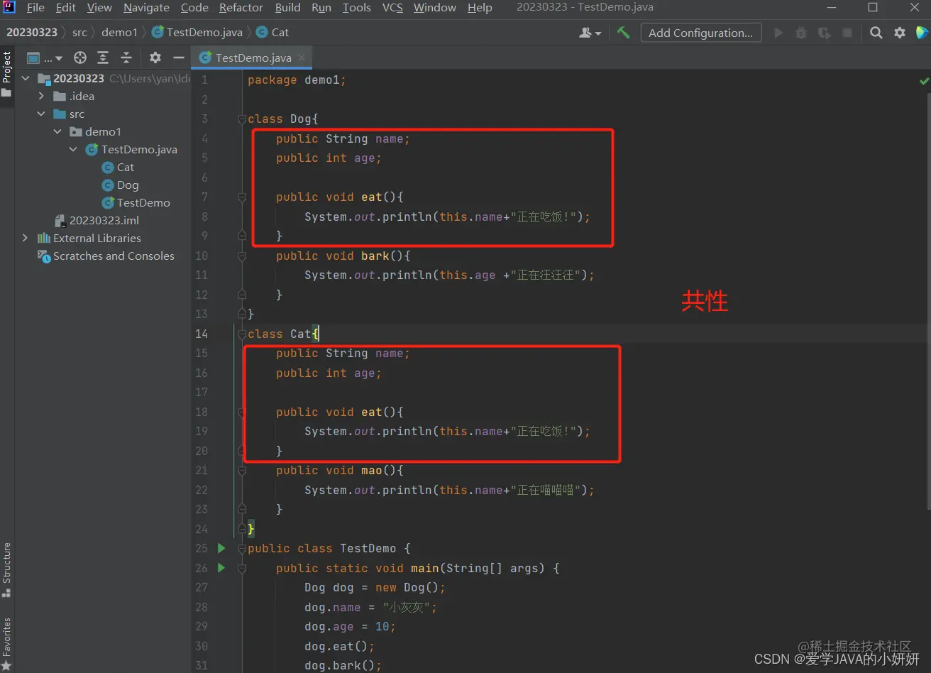我们用下面的代码描述狗和猫.