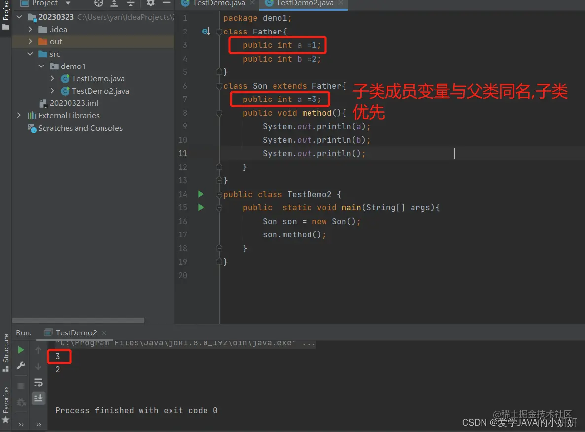 子类和父类存在同名成员变量.