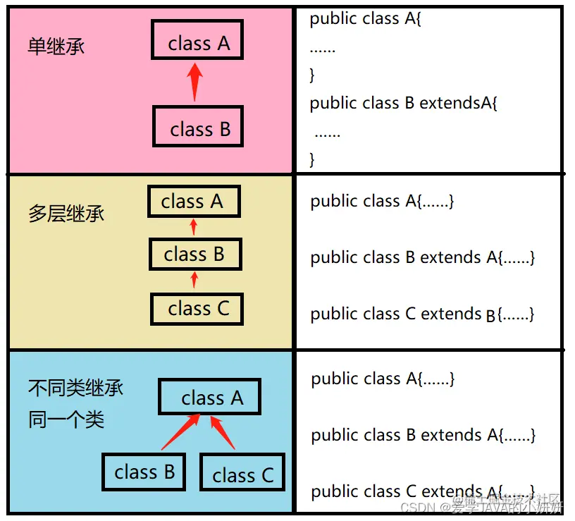 JAVA中的继承方式有以下几种: