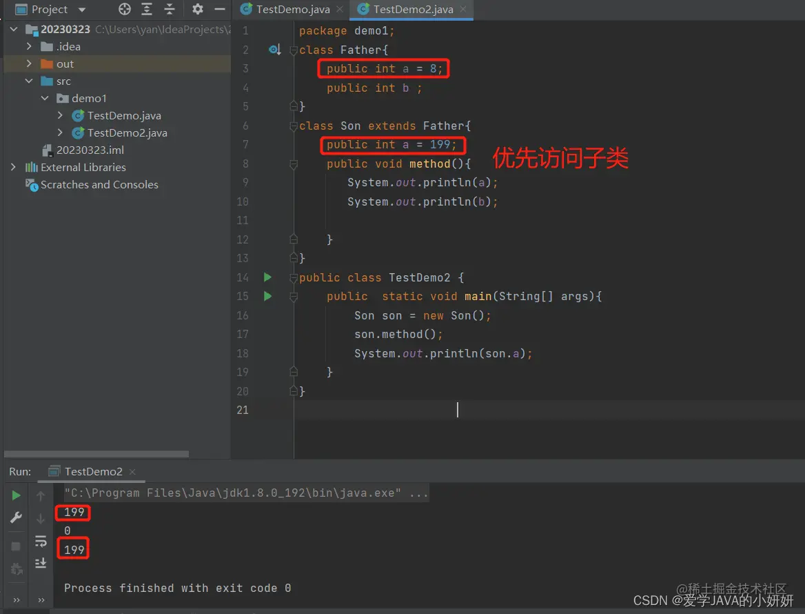 - 访问的成员变量与父类中成员变量同(不考虑数据类型),优先访问自己的