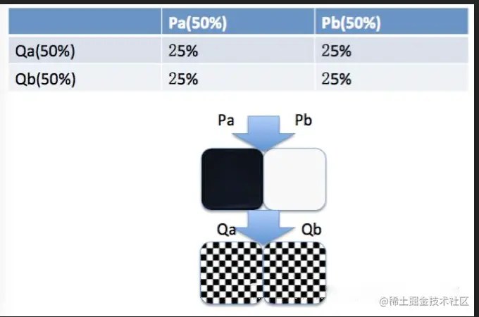 第二种,所有实验都用全部流量,此时我们认为实验虽然互相之间有影响,但是这种影响是正交的,量大的时候应该是均匀的,如下图所示,P实验的两个策略人群,到Q实验时,对Q的两个策略影响是均匀的。