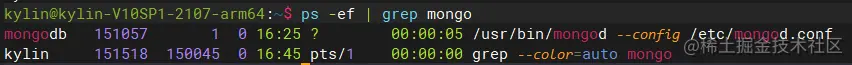 此时我们也可以通过ps命令查看是否存在MongoDB相关进程: