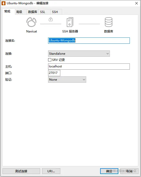 由于我的是部署在外网,所以需要SSH进行跳转。主机就是IP地址,端口号填写能连接到该主机的SSH端口号。