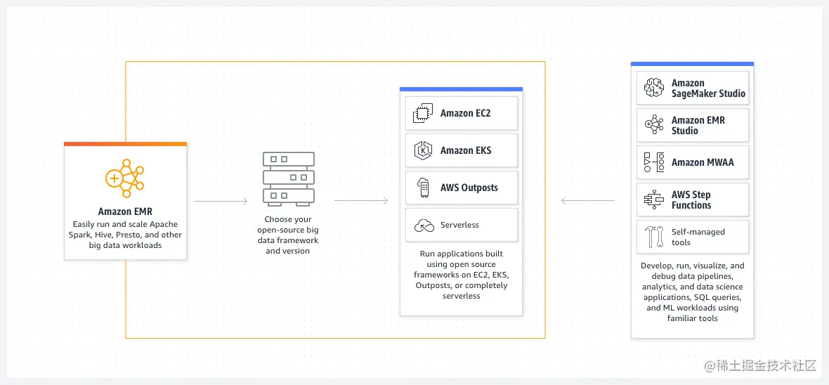 作为一个技术人员,我在整套使用下来更偏好于AWS EMR的使用,说下我个人喜欢的几点: