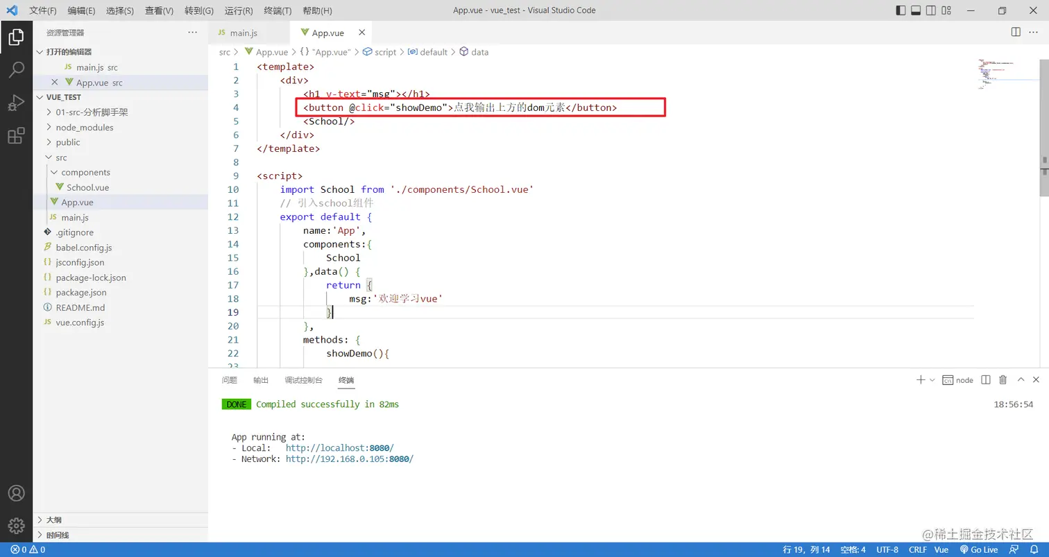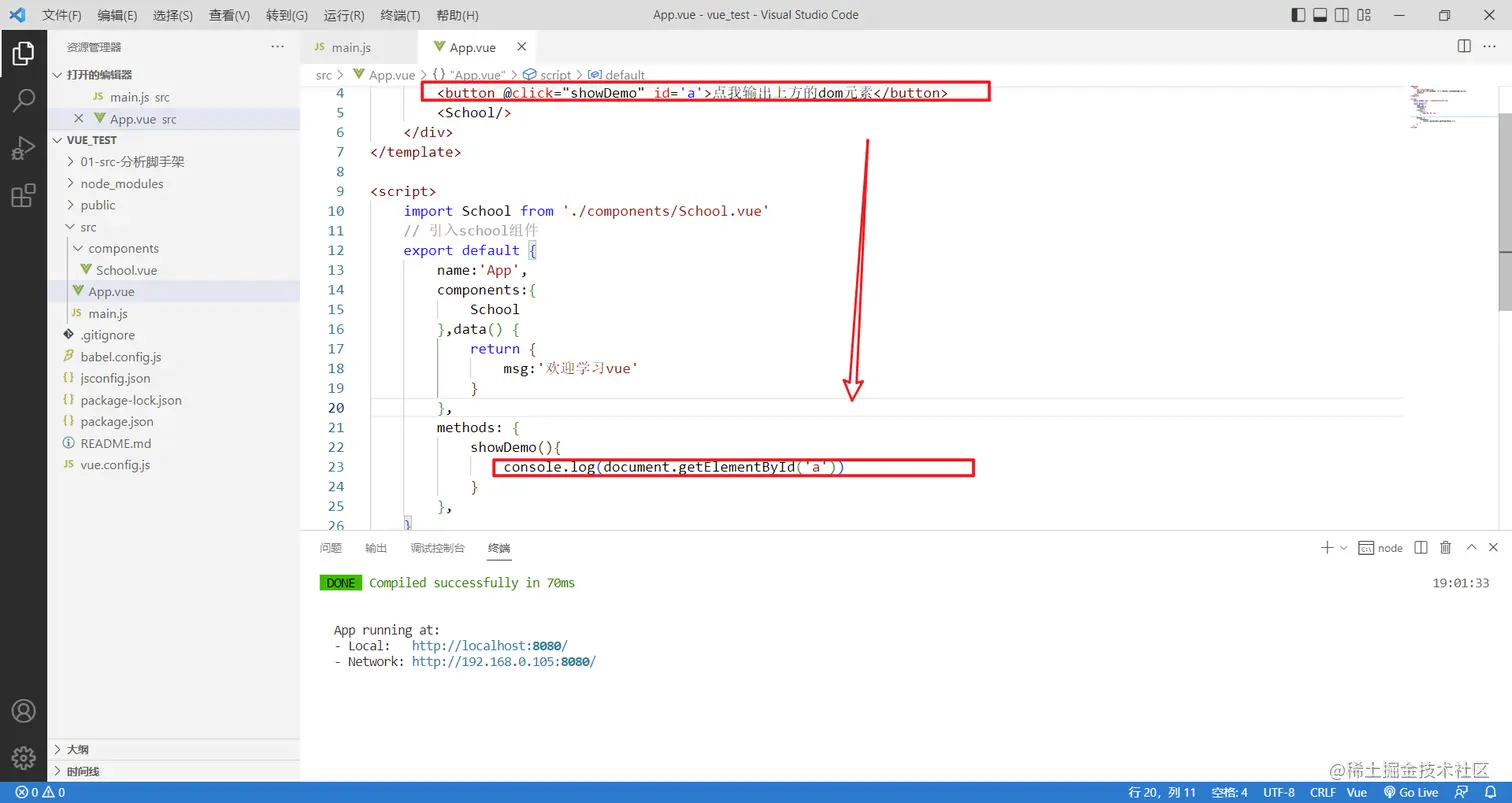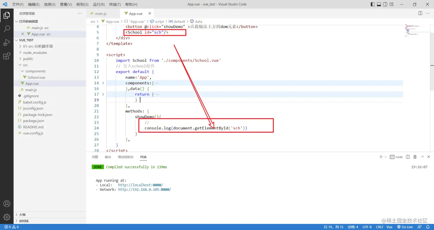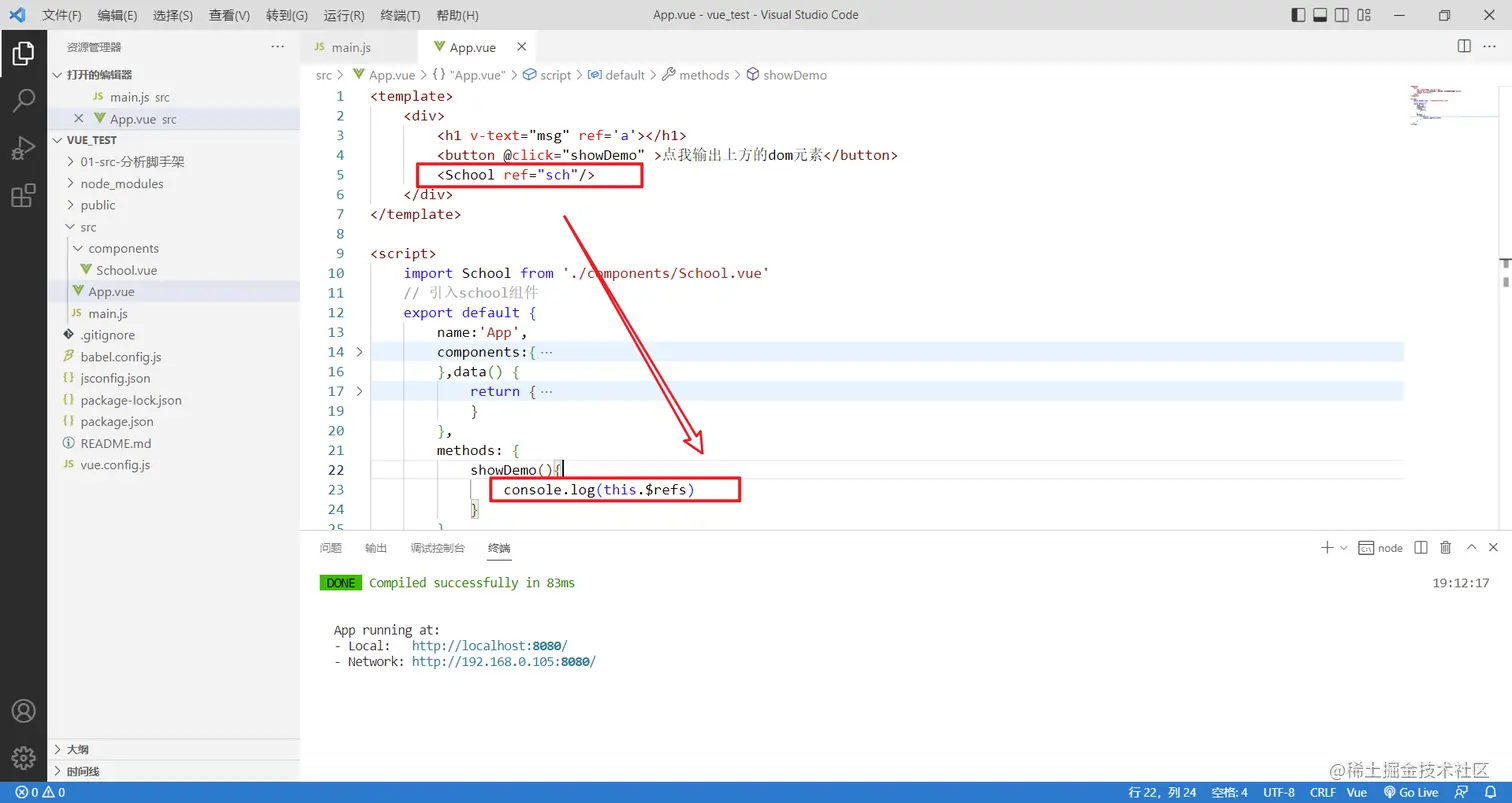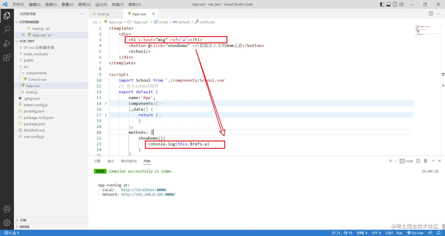上面我是给h1标签加了ref属性,h1属性html标签,但是如果想给school标签加ref呢?school可是组件标签