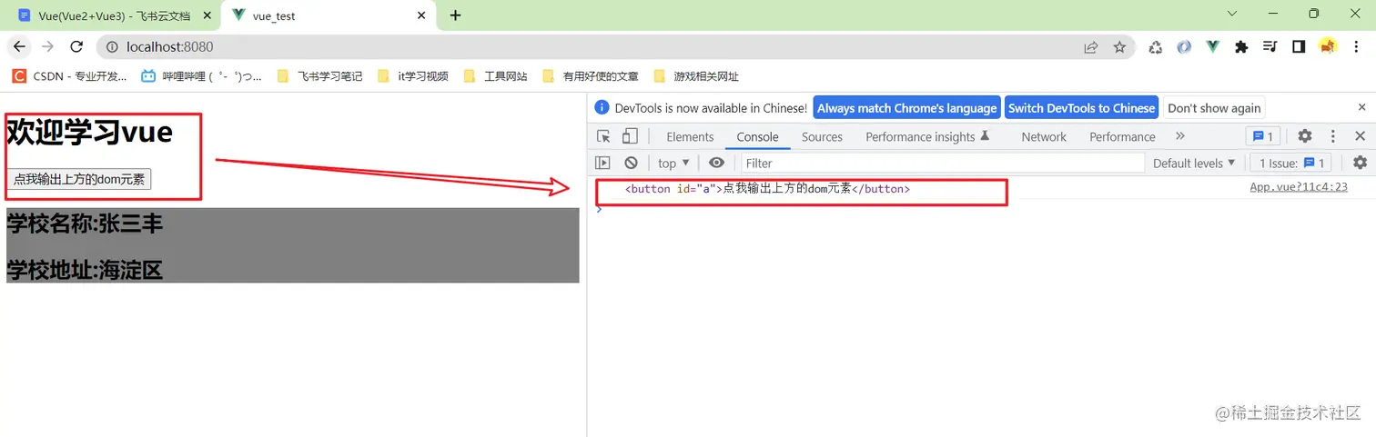 如图:有一个按钮,点击按钮可以输出dom元素