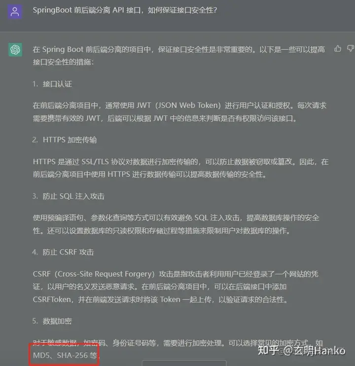 如何帮助 ChatGPT 更好地学习和进化:纠正其错误的回答 栈江湖 2023-04-28 89 阅读1分钟 如果您发现了 ChatGPT 的回答存在错误,可以通过向 ChatGPT 提供正确的答案来帮助它更好地学习和改进。ChatGPT 可以立即接受您提供的信息,并将其整合到它的知识库中,以便在未来类似问题的回答中更准确地回答相关问题。 1、首先回答加密用MD5、SHA-256 2、告诉他不对 3、再次问两样的问题,已更新了