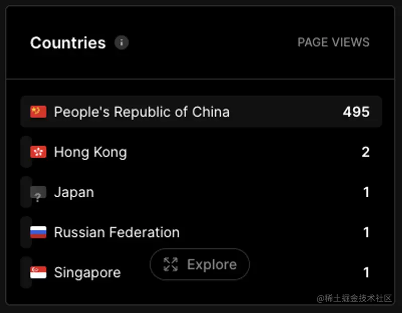 - 展示来自的国家,竟然还有国外的使用者,应该是用魔法访问的