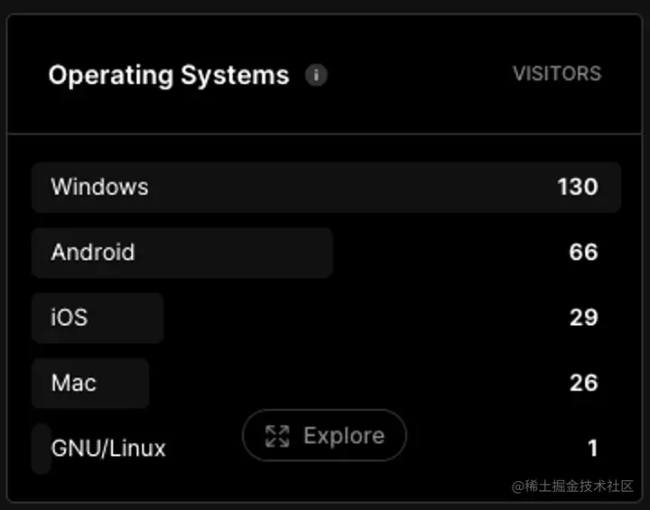 - 展示用户使用的系统,看来Android和Windows市场份额还是大啊,竟然还有Linux系统~