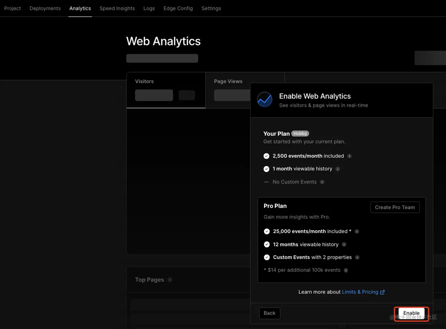 步骤一:在项目里,左侧菜单栏选择一下“Analytics”选项,在Analytics页面里,咱们需要点一下“Enable”按钮