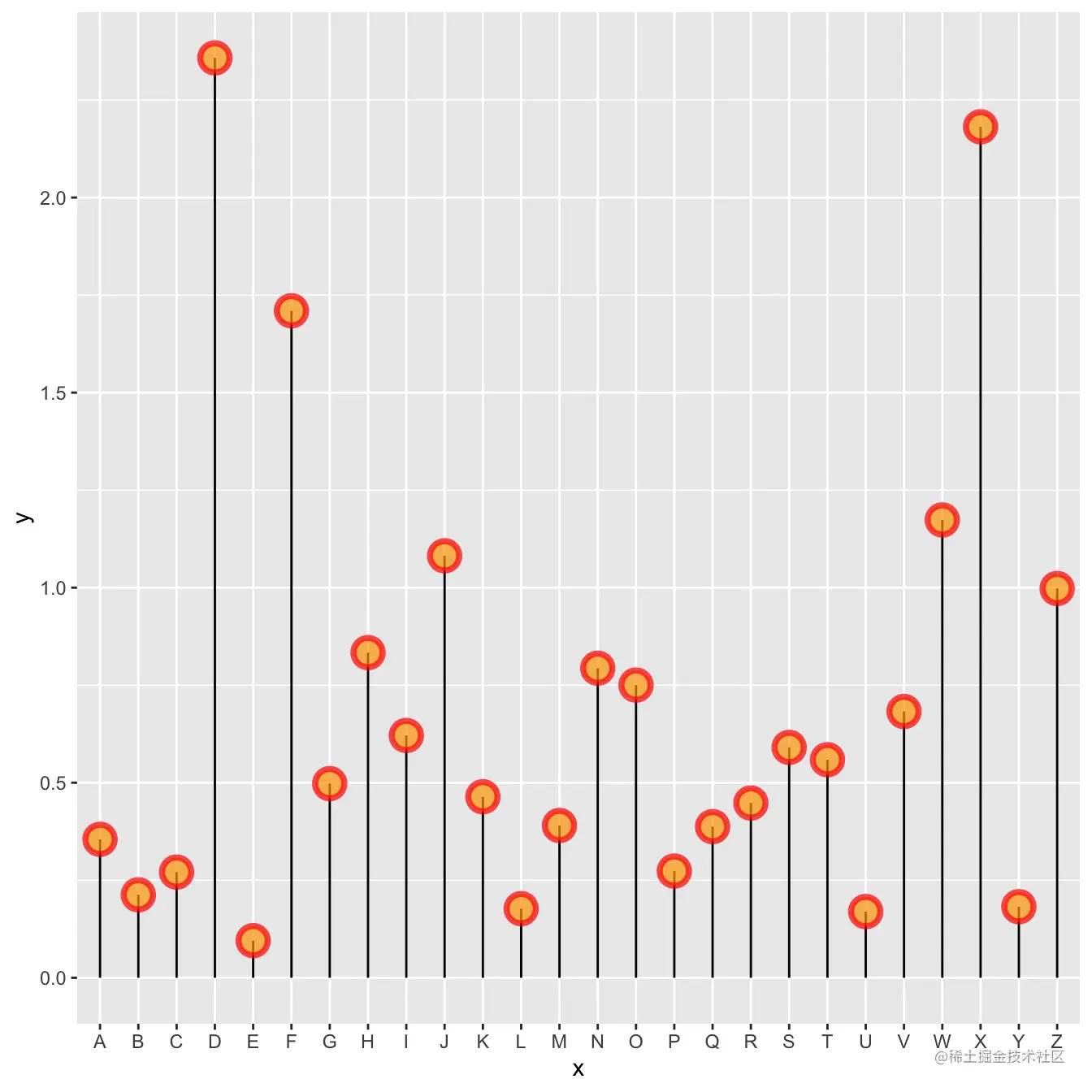 棒棒糖图可以成为常规条形图的替代品。它显示了数值变量和分类变量之间的关系。这种类型的图表由一条线组成,该线表示量级,并以点或圆圈结尾,突出显示数据值。因此,可以说它的设计类似于一堆棒棒糖。