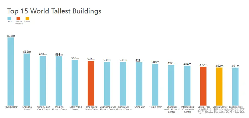最常见的图表类型之一。条形图是一组矩形,其长度与其表示的值成正比。每个矩形(条形)都表示一个类别。条形图非常适合比较。矩形长度的差异比尺寸和颜色的差异更容易察觉。