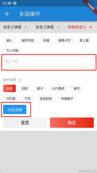 在控制器SpinnerFilterNotifier里要有获取到拼接视图结果的操作,在点击 重置 按钮的时候需要通过监听来清空选项;