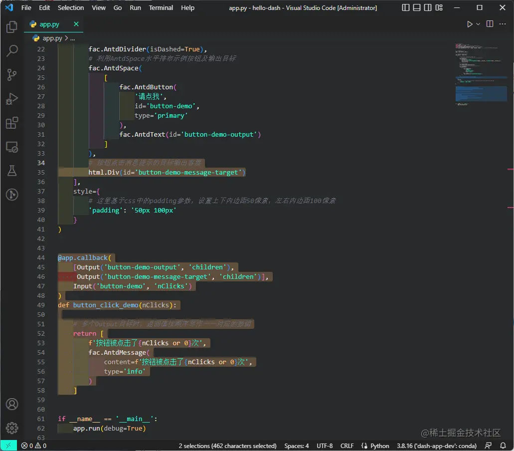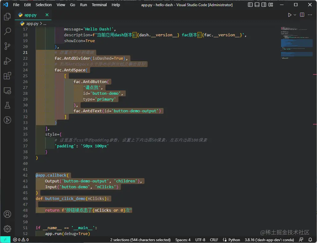 有了作为应用主文件的app.py之后,我们就可以开始编写dash应用代码了,一个dash应用具有以下几个基本构成部分: