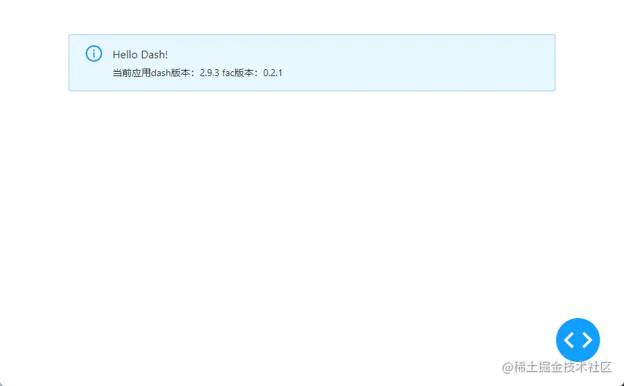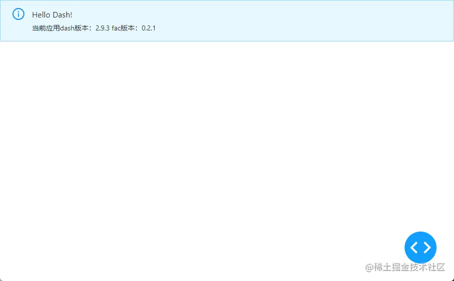 在dash组件的世界中,一个组件只要允许接受children参数,就可以为其嵌套传入单个组件,或由多个组件构成的列表,因为children参数也是对应组件的第一个位置参数,所以我们可以像下面这样很方便的传入一些其他组件,这里以fac中的警告提示组件为例,我们将dash和fac的版本信息传入其对应参数中: