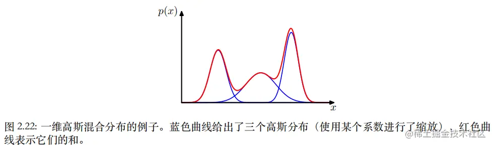 通过使⽤⾜够多的⾼斯分布,并且调节它们的均值和⽅差以及线性组合的系数,⼏乎所有的连续概率密度都能够以任意的精度近似。