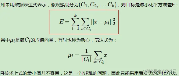 4) 采用迭代方法,得到的结果只是局部最优(本身是个NP-hard问题,多项式系数; 聚类结果受初始簇心影响)