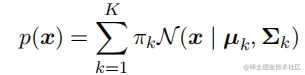 ⾼斯混合分布的形式由参数π, µ和Σ控制,其中令π ≡ {π1, . . . , πK}, µ ≡
