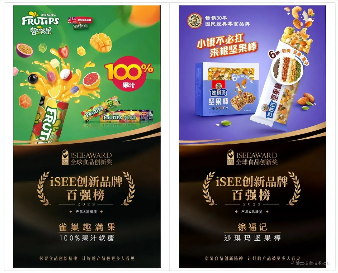 30余年品牌历史的确给徐福记积攒了厚实的家底,但除了那些市场的长红品牌,重要的还是洞察市场、跟上行业需求进行产品创新的能力,这才是一个品牌最“能打”的保障。近期,徐福记沙琪玛坚果棒和趣满果两款产品登上2023年“iSEE全球食品创新品牌类百强榜”,就是一个缩影。这是食品行业重要的创新风向标,徐福记的创新实力得到认可。