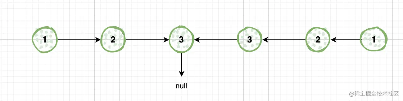 next指针指向空,将后半部分节点进行逆序。 - 分别从头和尾部一个一个遍历判断,看每一个节点的值是否相同