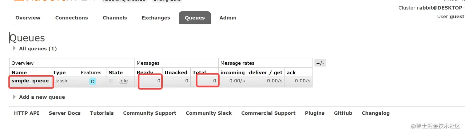 查看RabbitMQ控制台中的Queues内容