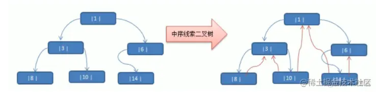 - 但是6,8,10,14这几个节点的左右指针,并没有完全的利用上
