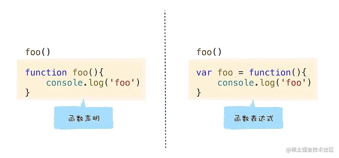 因为语义不同,所以我们给这两种定义函数的方式使用了不同的名称,第一种称之为 函数声明,第二种称之为 函数表达式。
