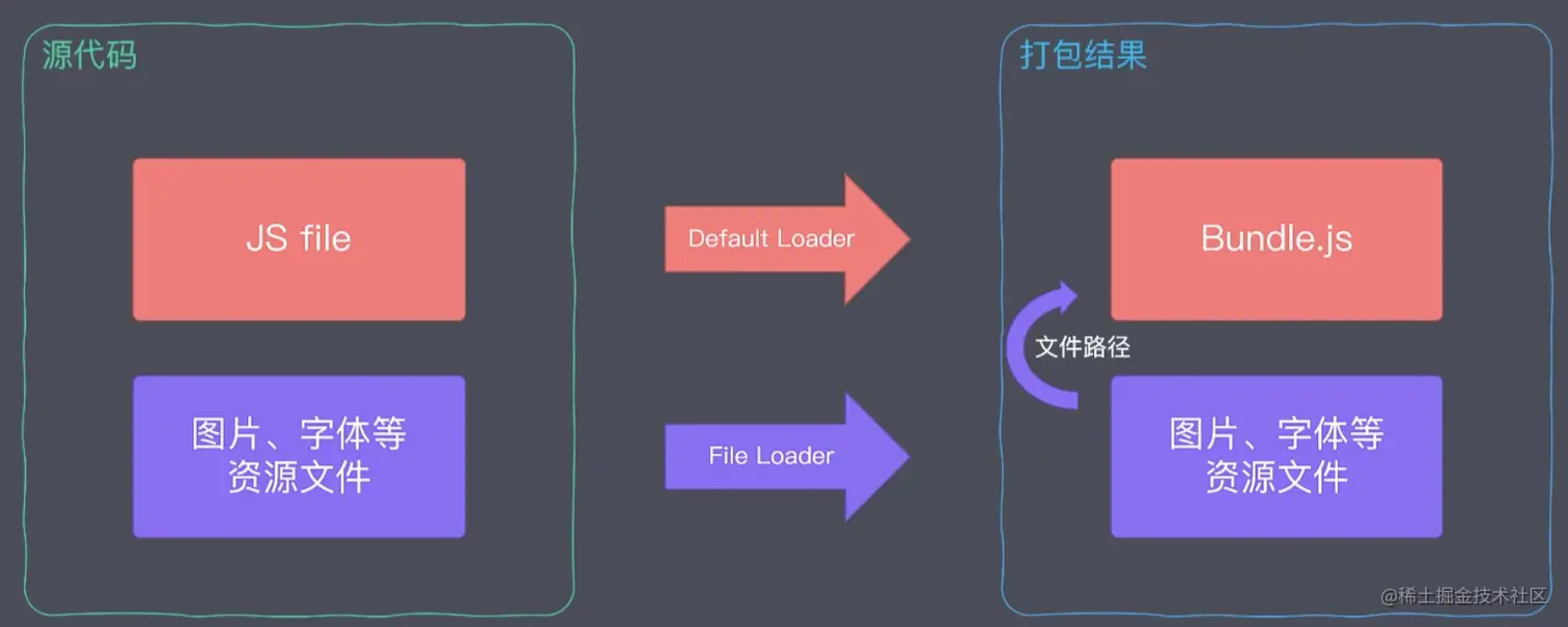 它是将导入的结果变成一个url地址,并生成一个文件到输出目录。它的原理是拿到source,也就是文件内容,图片内容buffer,然后生成一个具有相同文件内容的文件到输出目录,返回一段代码export default '文件路径'。