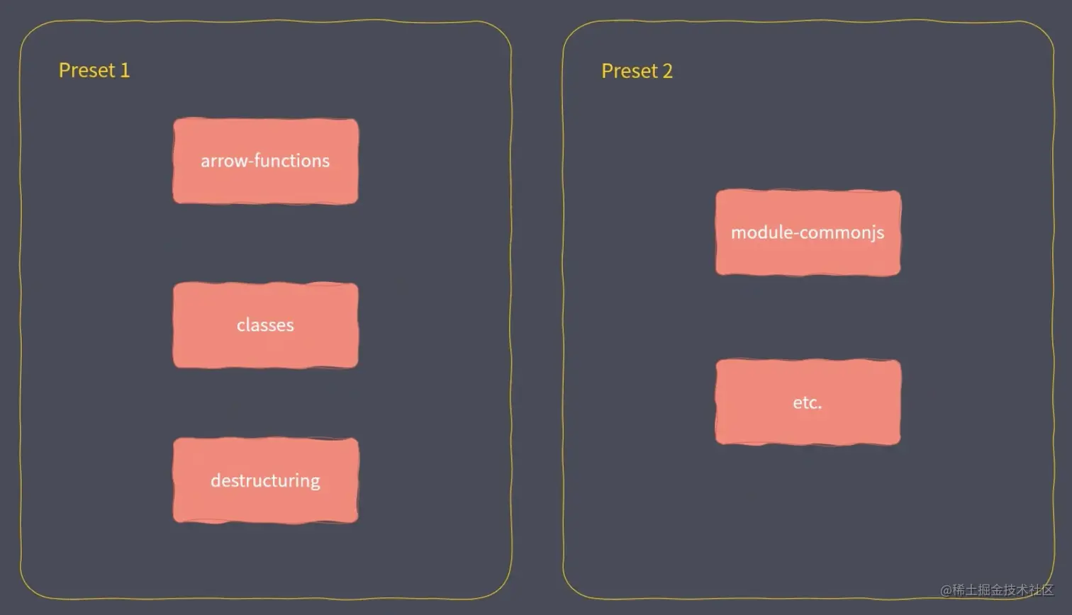 babel的核心模块并不会去转换代码,具体的转换需要我们去配置插件,它是基于插件机制的,每个特性的转换都有对应的插件。而presetenv是一个插件的集合,包含了最新JS标准的所有新特性: