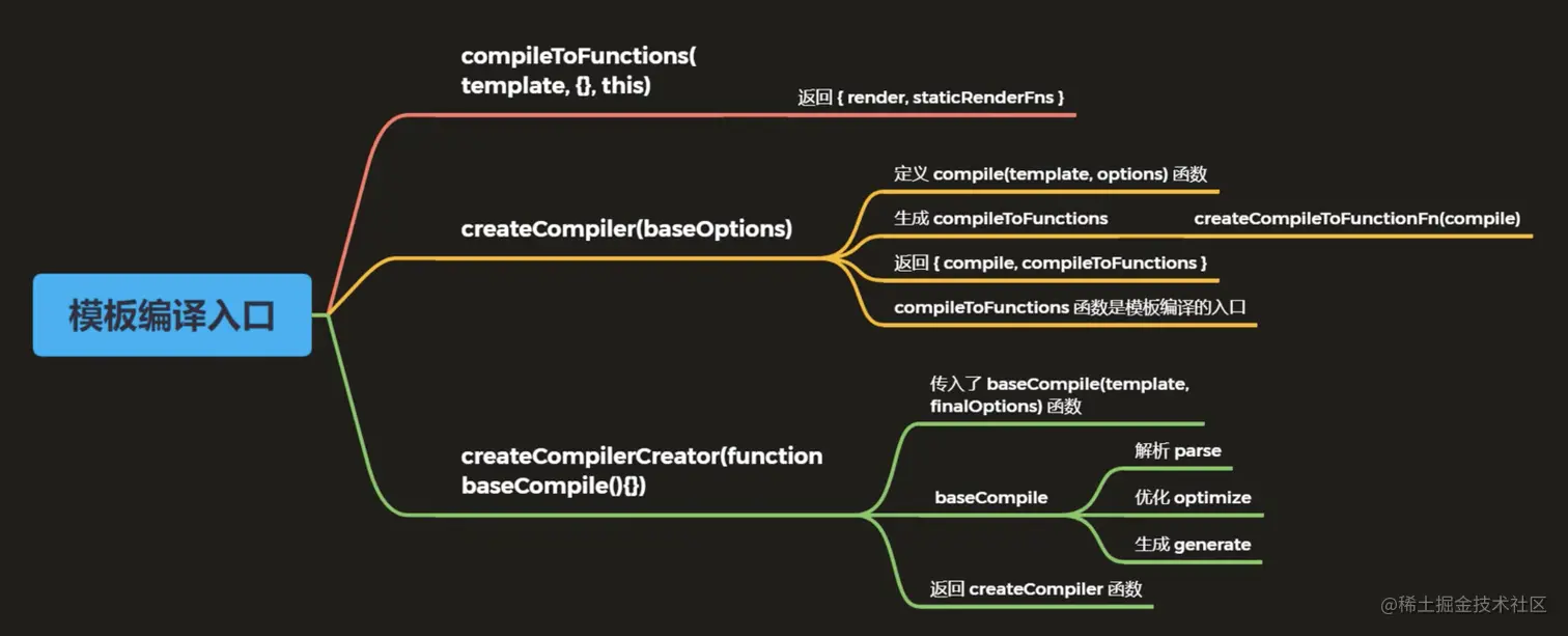 模板的编译入口函数是定义在compiler/index.js文件,可分为这几步: