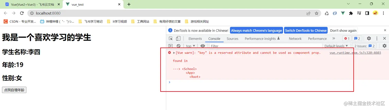 虽然报错了,但是会以组件实例传入的key为主,就说明了props属性的优先级大于data