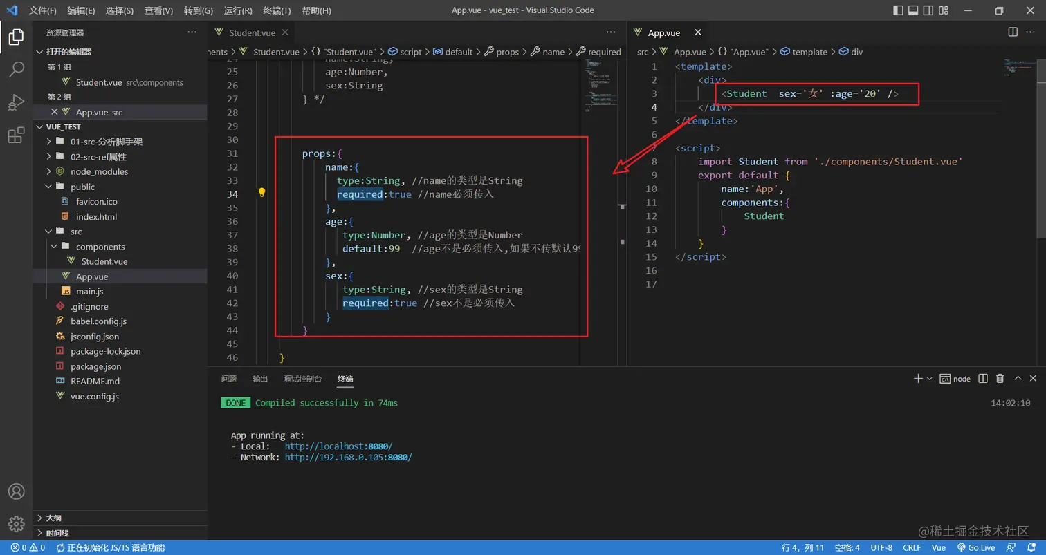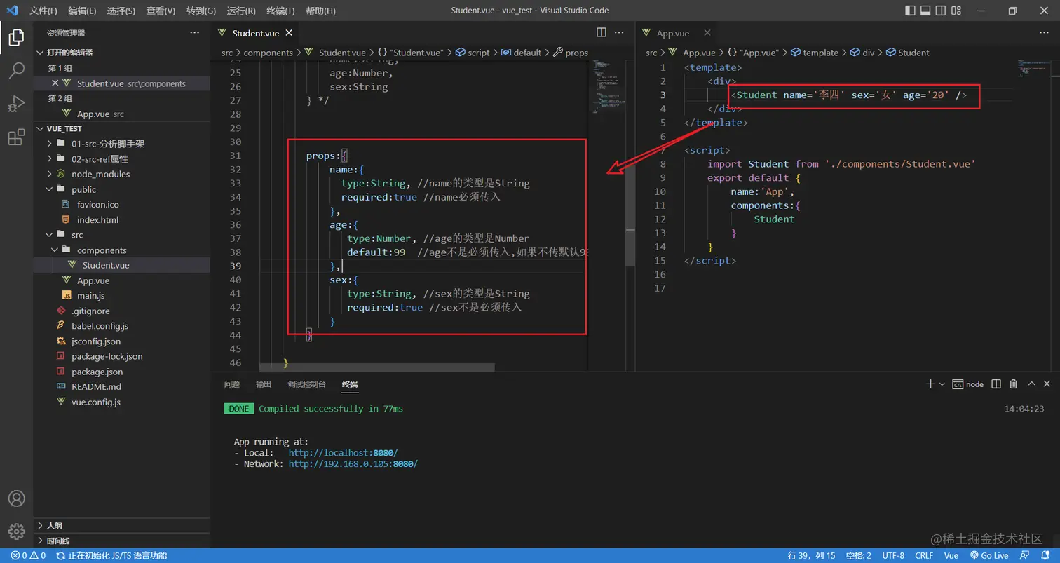 备注:props是只读的,Vue底层会监视对props的修改,如果进行了修改,就会发出警告