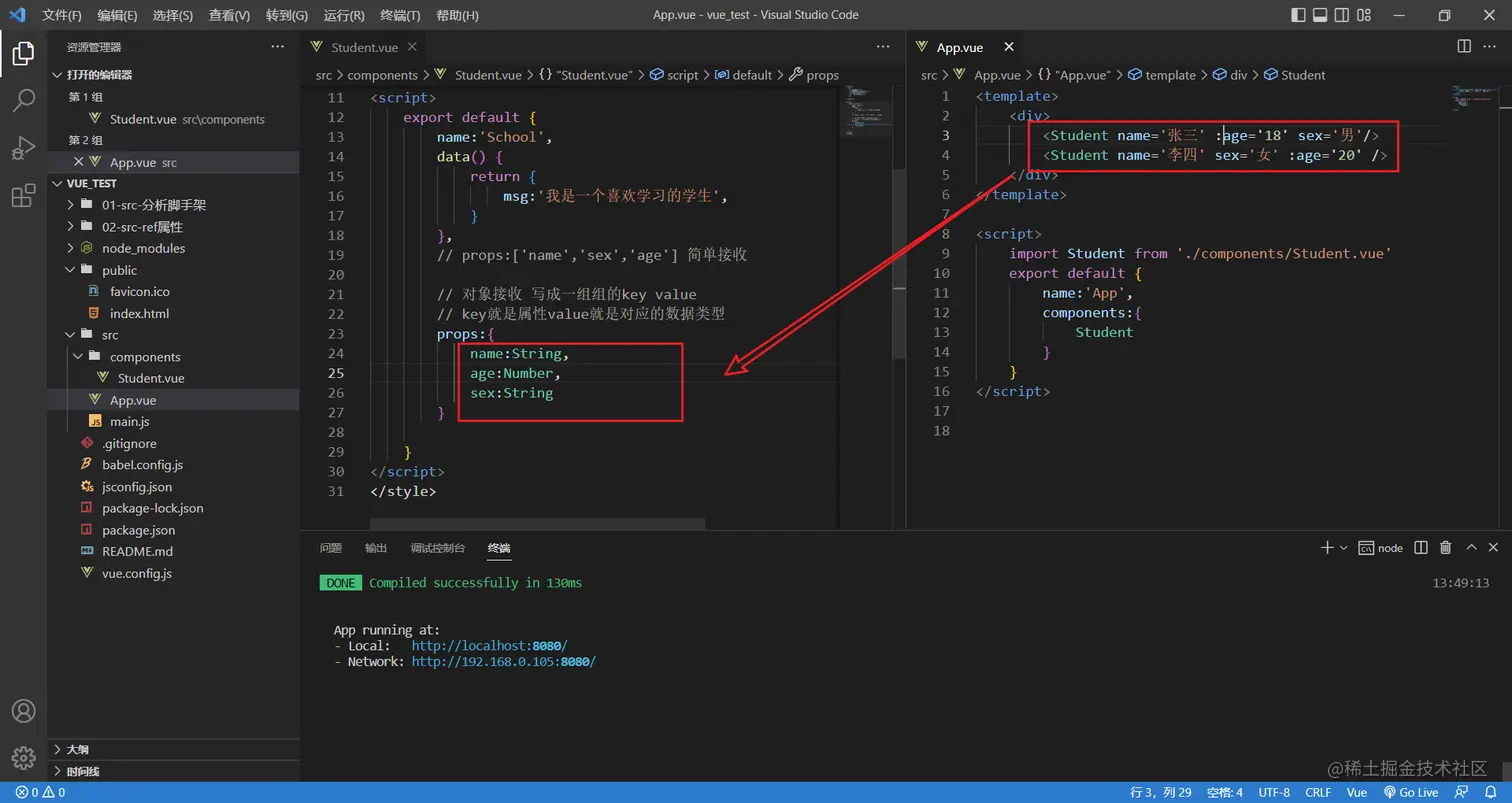 props主要用来实现组件复用,并且动态绑定数据,它有3种使用方式,下面一一说明