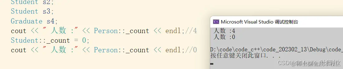 cout << " 人数 :" << Person::_count << endl;//4