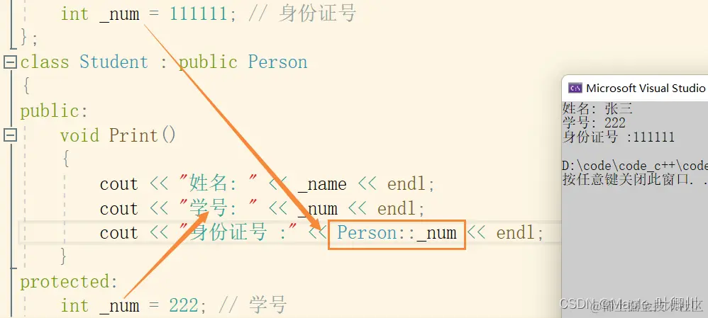 // Student的_num和Person的_num构成隐藏关系,可以看出这样代码虽然能跑,但是非常容易混淆