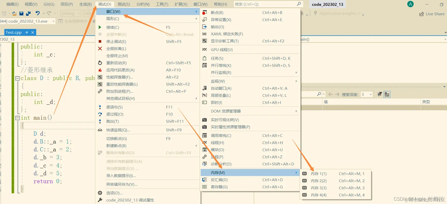 调试内存窗口查看