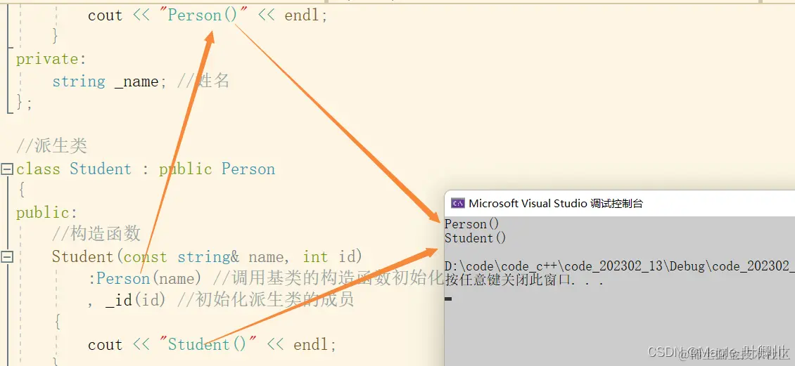 冒号右边的 public 是子类进行继承的继承方式,Person 则是父类的类名