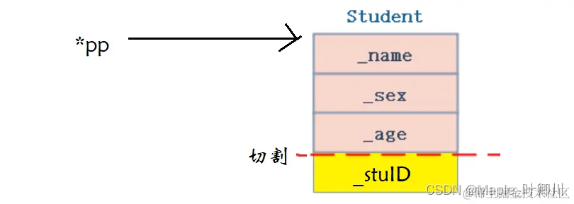 Student* ps2 = (Student*)pp; // 这种情况转换时虽然可以,但是会存在越界访问的问
