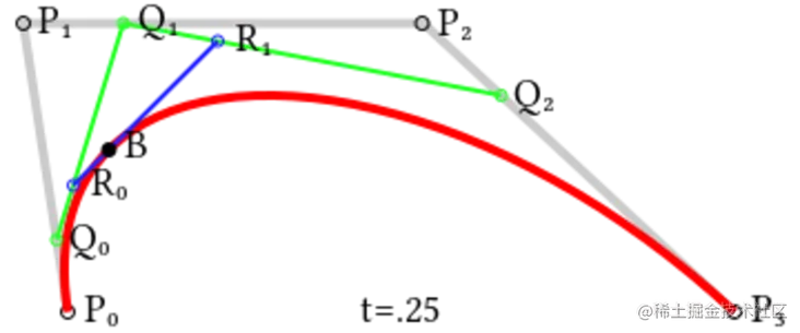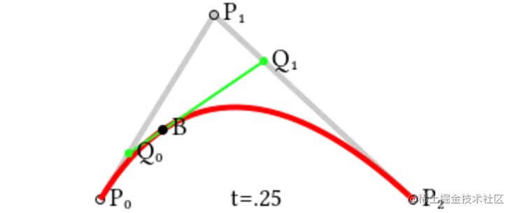 - 点Q0沿着P0和P1之间的直线移动。同时,点Q1沿着P1和P2之间的直线移动
