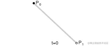 想象两个点P0和P1,其中P0是动画的起点,P1是结束点。现在想象另一个点在两点之间线性移动,如下所示