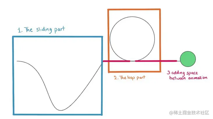 在做循环之前,球应该沿着X轴移动一小会儿,所以两个动画之间有空间。