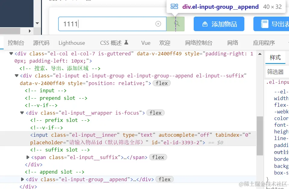 现在控制台里面找到想要改变的组件类名,如.el-input__wrapper
